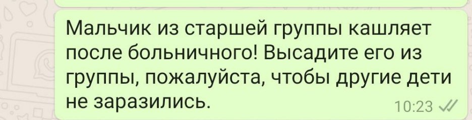 А вот держать его дома до высыхания последней сопли, или, тем более, пару недель после этого, совершенно бессмысленно. В саду постоянно есть кто-то, выделяющий респираторные вирусы, и не всегда они имеют внешние проявления — поэтому массовое изгнание сопливых детей сильно осложняет жизнь родителям “сопливых”, и при этом совершенно не снижает риск подцепить ОРВИ для всех остальных.